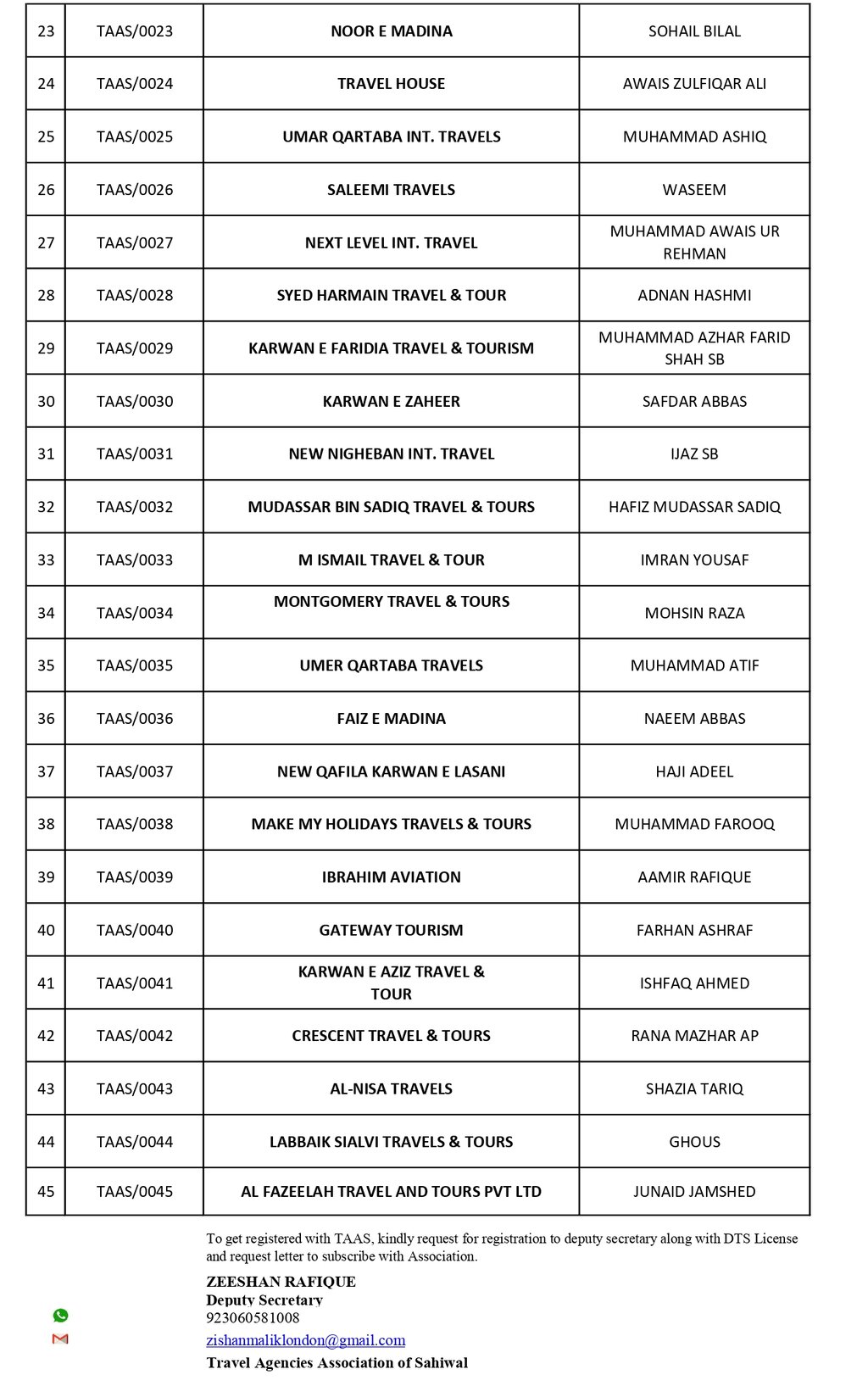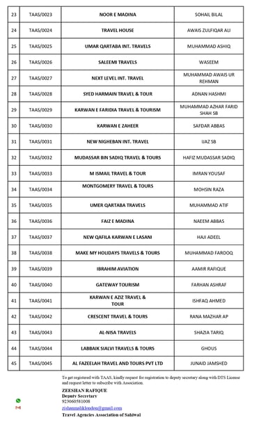 Verification based on DTS Holders and Signed up Members with Travel Agencies Association of Sahiwal.