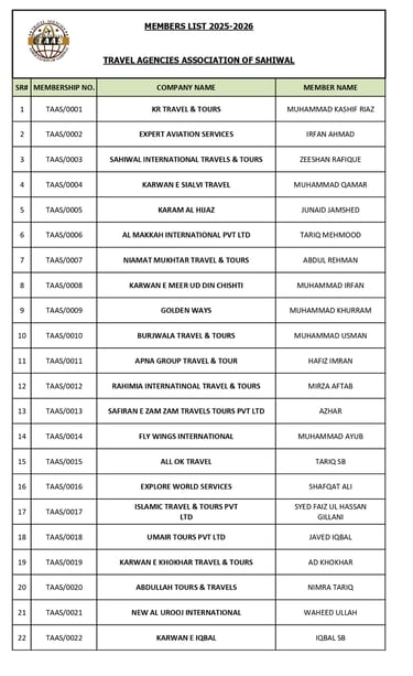 On behalf of all members of the Travel Agencies Association of Sahiwal (TAAS), we extend our heartfelt appreciation to the esteemed core committee members for their tireless efforts, dedication, and transparent conduct throughout the election process. Your commitment to fairness, unity, and professionalism not only ensured a smooth and credible election but also set a high standard for how our association should operate moving forward. The way you conducted the entire process with clarity, inclusiveness, and impartiality reflects your genuine desire to serve the collective interest of all DTS-registered travel Agencies in the region.